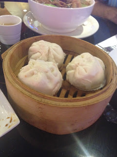 The beauty of dim sum is that they are small, sharable plates so you can go all out and order a feast. Pressed for time, J and I went with a scaled back version. Dim sum here is advertised as made to order so I was curious to try the steamed rice rolls with shrimp and steamed bbq pork buns for comparison. I love the soft and chewy texture of steamed rice rolls. We have a similar Vietnamese dish called banh cuon that's dipped in fish sauce. The Chinese dim sum version comes in a pool of sweet soy sauce and the steamed rice rolls are the perfect canvas to mop the salty soy and bites of sweet shrimp completes this small plate. As for the pork buns, the filling is your typical sweet, gelatinous red char siu pork much like the baked version. I enjoyed the steamed versions better than the baked version mostly because it's served hot and I like the fluffy bun texture better too.