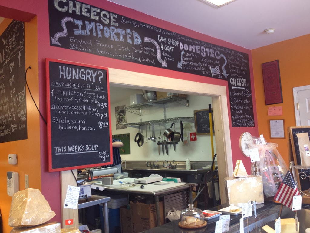There are two grilled cheese menus at The Cheese Traveler: the front board is reserved for the day's specials while just around the corner, you'll find the full regular menu overlooking the olive bar and case of cured meats. Anything with duck confit usually calls our name so we got one sandwich from the daily menu (a duck confit and rippleton cheese with cider jelly) and one from the regular menu (The Spicy & Smoky). It's not just the bread or just the cheese that makes each and every one of these grilled cheese sandwiches special but the unique pairing of ingredients.